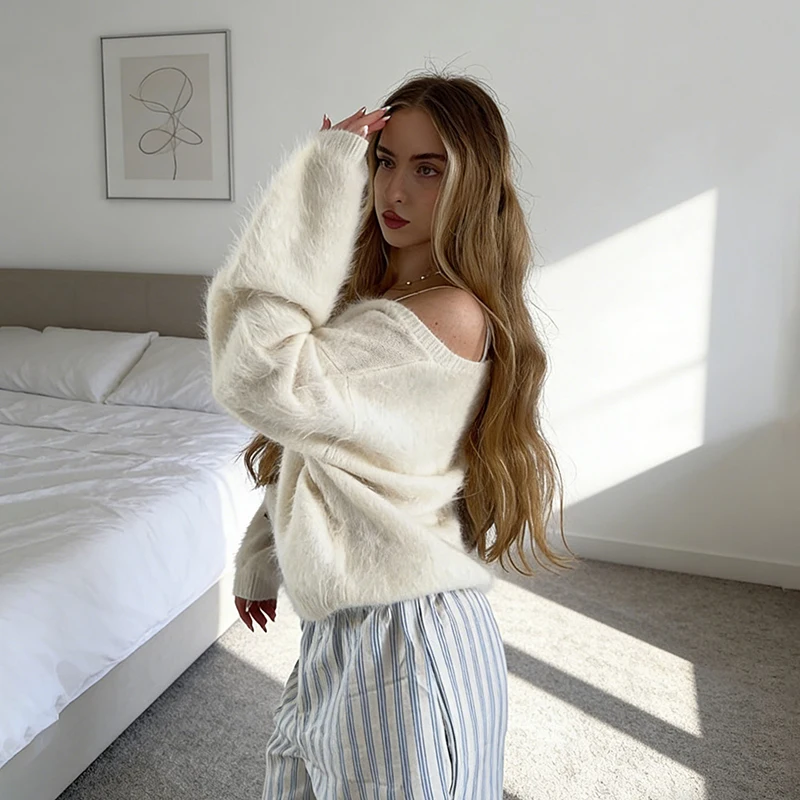 Women Knit Pullover, Casual Loose Top, O-Neck Sweater, All-Season Pullover, Tornova Women Top